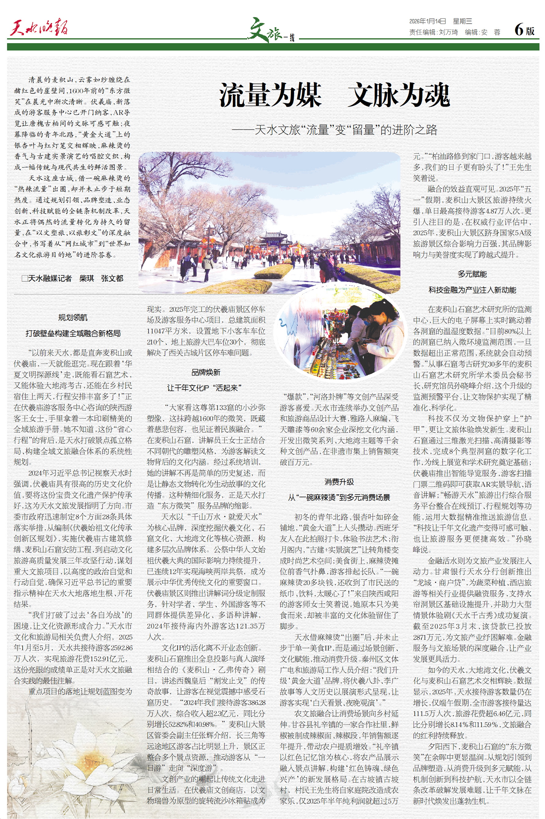 夕阳西下,麦积山石窟的“东方微笑”在余晖中更显温润。从规划引领到品牌塑造,从消费升级到多元赋能,从机制创新到科技护航,天水市以全链条改革破解发展难题,让千年文脉在新时代焕发出蓬勃生机。