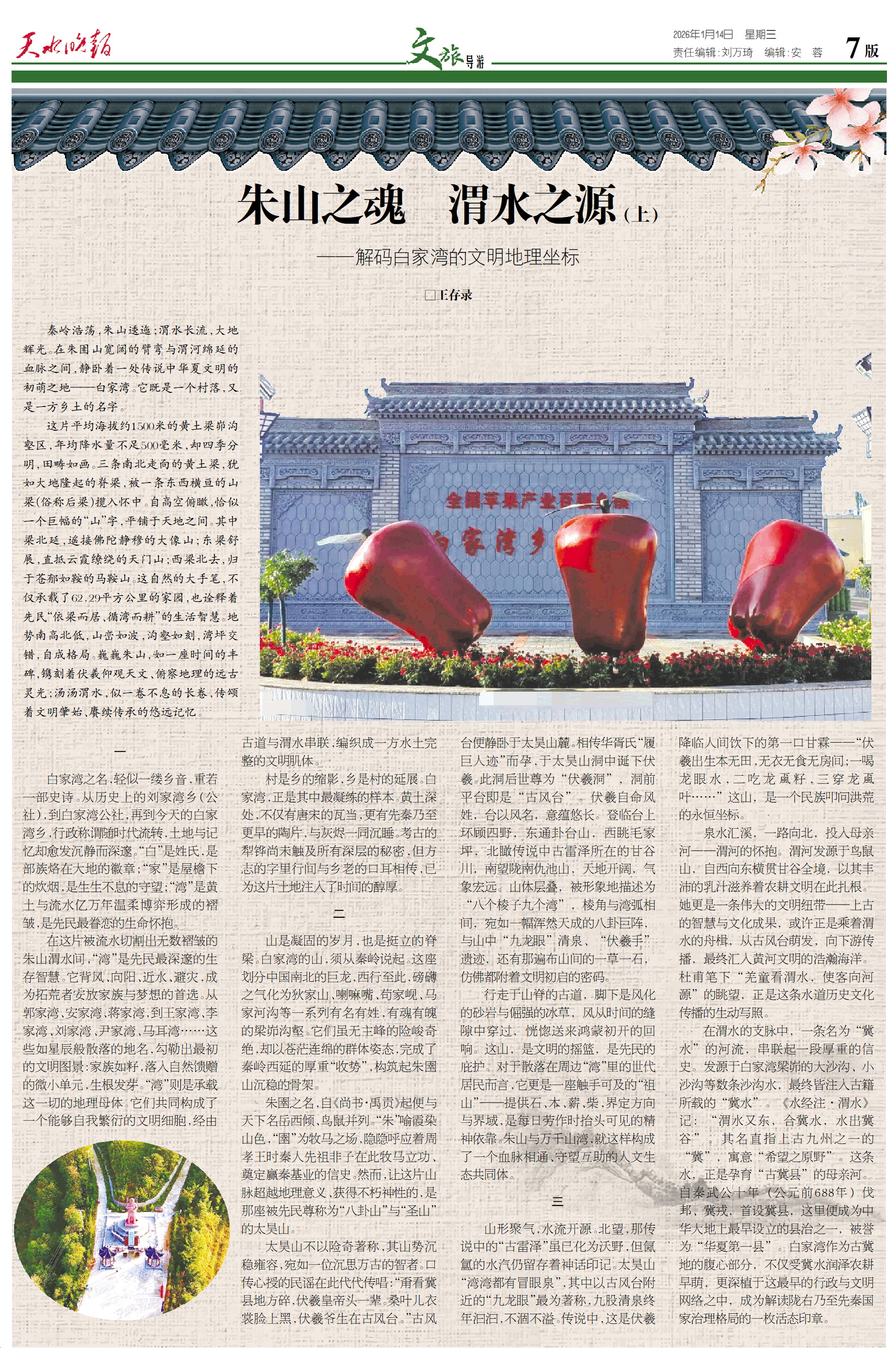 秦岭浩荡,朱山逶迤;渭水长流,大地辉光。在朱圉山宽阔的臂弯与渭河绵延的血脉之间,静卧着一处传说中华夏文明的初萌之地——白家湾。它既是一个村落,又是一方乡土的名字。