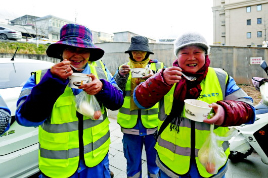 1月26日,农历腊月初八,秦州区某康养机构为城乡环境卫生治理服务中心七里墩环卫所的环卫工人熬制赠送腊八粥,感谢“城市美容师”们付出的辛勤劳动。当日,市民们也在超市选购熬制腊八粥的食材。俗话说,过了腊八就是年。暖意融融的“腊八节”之后,人们也就开始忙着置办年货,年味也逐渐浓了起来。 天水融媒记者 孙镇 摄
