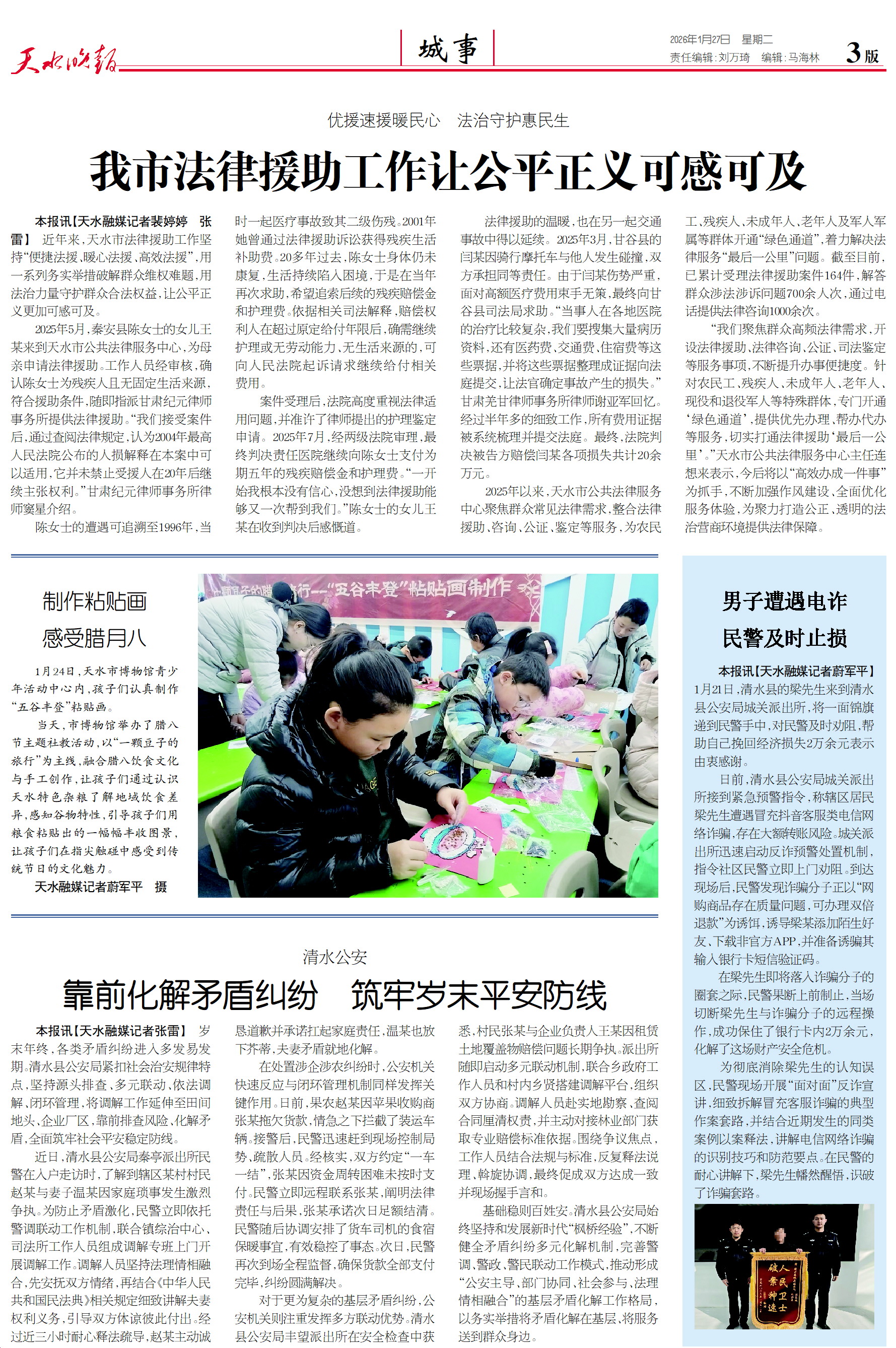 新闻 时间:2026年01月27日 来源:天水晚报