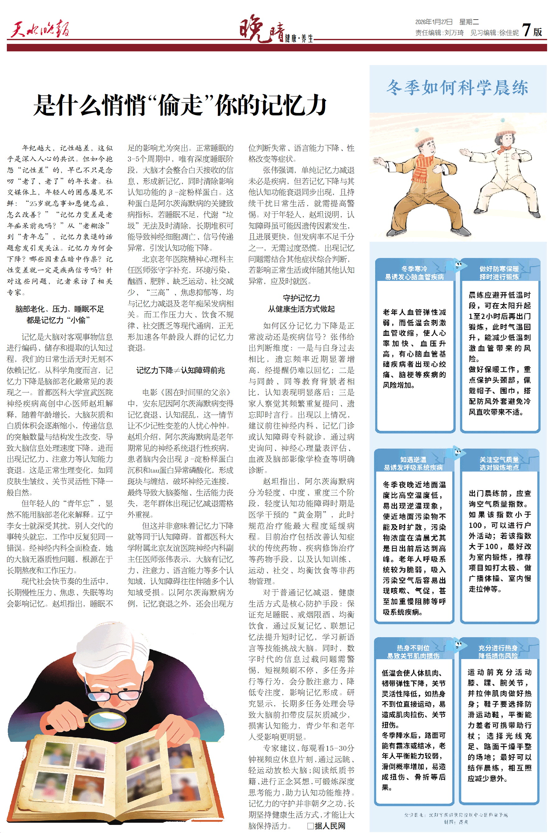专家建议,每观看15-30分钟视频应休息片刻,通过远眺、轻运动放松大脑;阅读纸质书籍、进行正念冥想,可锻炼深度思考能力,助力认知功能维持。记忆力的守护并非朝夕之功,长期坚持健康生活方式,才能让大脑保持活力。 □据人民网