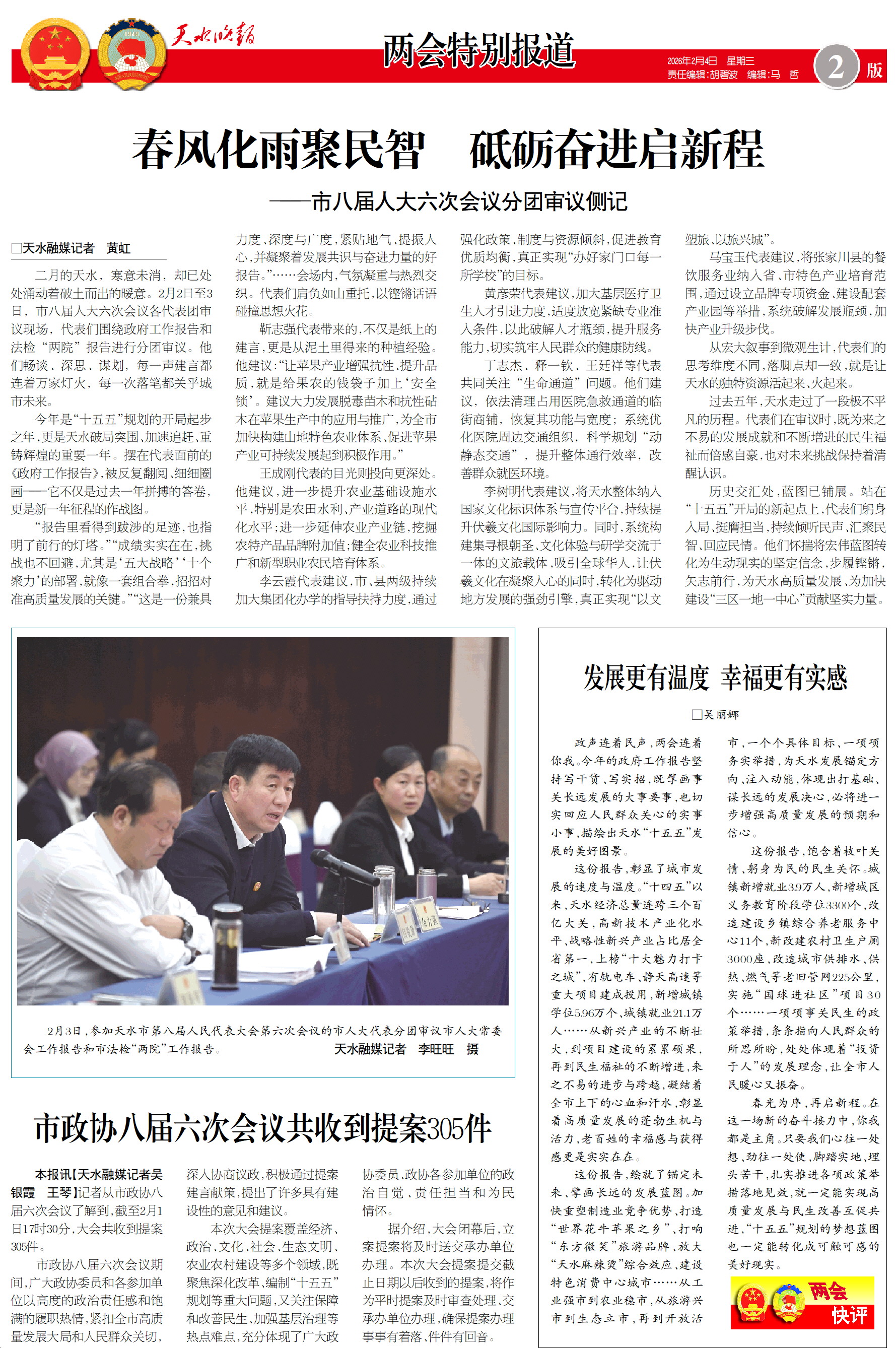 2月3日,参加天水市第八届人民代表大会第六次会议的市人大代表分团审议市人大常委会工作报告和市法检“两院”工作报告。 天水融媒记者 李旺旺 摄