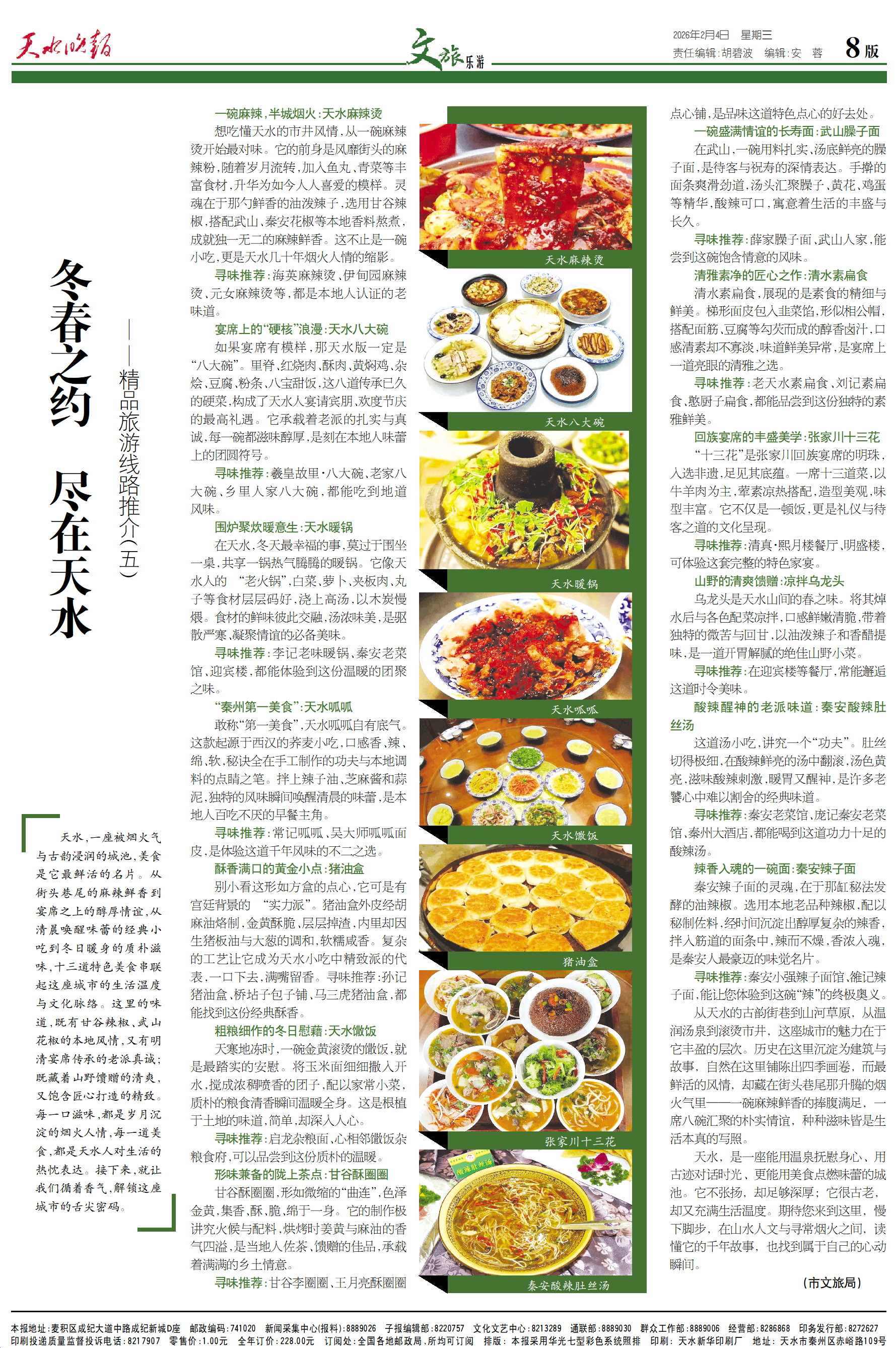 天水,是一座能用温泉抚慰身心、用古迹对话时光、更能用美食点燃味蕾的城池。它不张扬,却足够深厚;它很古老,却又充满生活温度。期待您来到这里,慢下脚步,在山水人文与寻常烟火之间,读懂它的千年故事,也找到属于自己的心动瞬间。