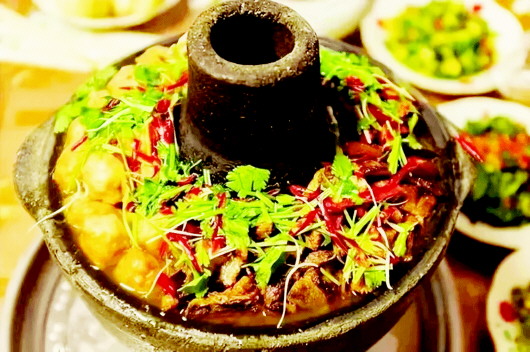 在天水,冬天最幸福的事,莫过于围坐一桌,共享一锅热气腾腾的暖锅。它像天水人的 “老火锅”,白菜、萝卜、夹板肉、丸子等食材层层码好,浇上高汤,以木炭慢煨。食材的鲜味彼此交融,汤浓味美,是驱散严寒、凝聚情谊的必备美味。