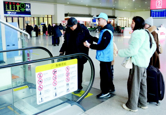 旅客行囊更轻便,安检效率更高,候车室免费充电、热水洗手等细节暖心。车站打造“东方微笑”服务品牌,开通重点旅客绿色通道,志愿者积极参与引导帮扶,不断提升服务品质,让春运旅途更舒适、温馨、顺畅。