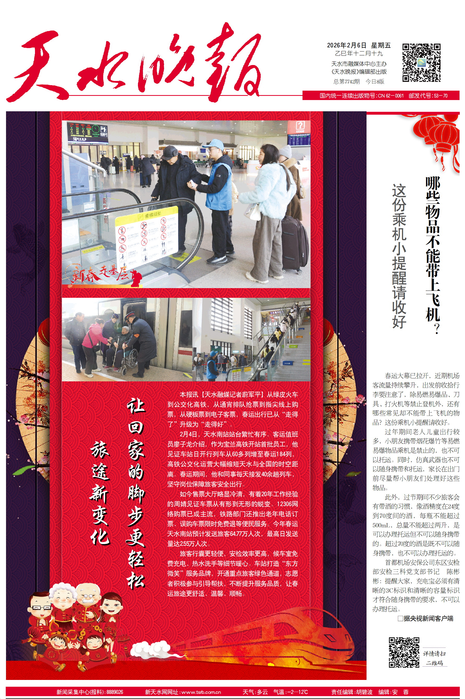 过年期间老人儿童出行较多,小朋友携带烟花爆竹等易燃易爆物品乘机是禁止的,也不可以托运。同时,仿真武器也不可以随身携带和托运,家长在出门前尽量帮小朋友们处理好这些物品。