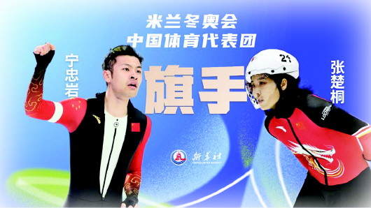 当地时间2月4日,2026年米兰-科尔蒂纳冬奥会开幕式中国体育代表团旗手揭晓——速度滑冰世界冠军宁忠岩和短道速滑冬奥季军张楚桐。