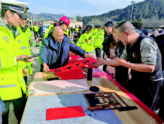活动现场“送福台”前,书法爱好者挥毫泼墨,将“平安”“团圆”“顺遂”等美好期许融入春联与福字,陆续送到旅客手中,拿到春联的旅客笑意满面,纷纷感慨赶路途中也能感受到浓厚年味,心里格外温暖。
