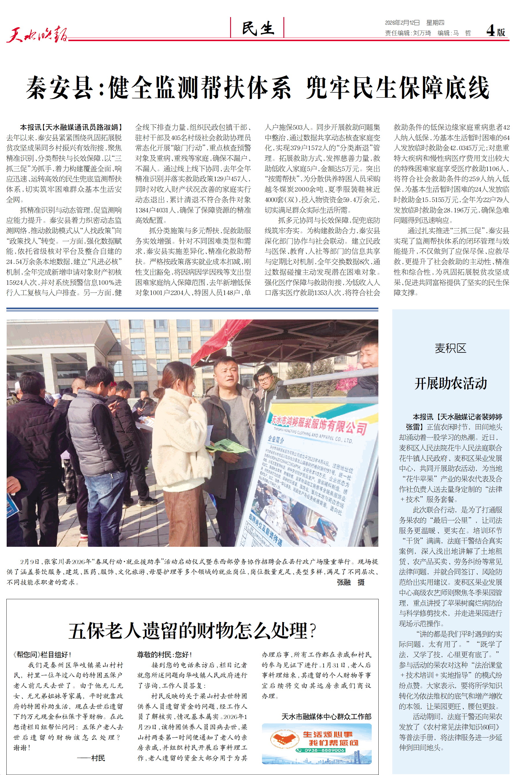 我们是秦州区华岐镇梁山村村民,村里一位年过八旬的特困五保户老人前几天去世了。由于他无儿无女、无兄弟姐妹等家属,平时就靠政府的特困补助生活,现在去世后遗留下约万元现金和社保卡等财物。在此想请栏目组帮忙问问:五保户老人去世后遗留的财物该怎么处理?谢谢!