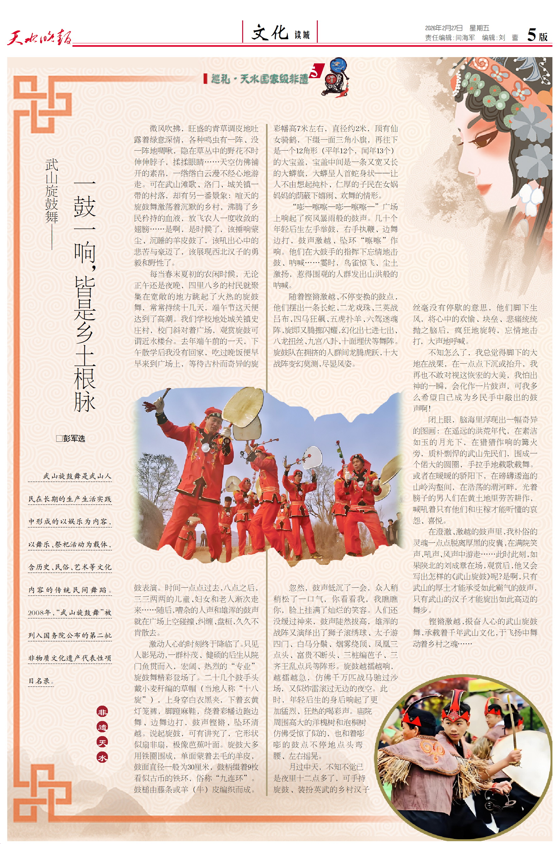 铿锵激越,振奋人心的武山旋鼓舞,承载着千年武山文化,于飞扬中舞动着乡村之魂……