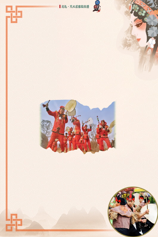 武山旋鼓舞是武山人民在长期的生产生活实践中形成的以娱乐为内容,以舞乐、祭祀活动为载体,含历史、民俗、艺术等文化内容的传统民间舞蹈。2008年,“武山旋鼓舞”被列入国务院公布的第二批非物质文化遗产代表性项目名录。