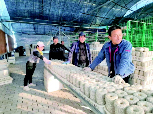 春节假期结束,清水县白沙镇桑园村迅速进入复工复产、春耕备耕状态,食用菌产业园菌棒上架工作全面启动,大棚内一派繁忙的生产景象。