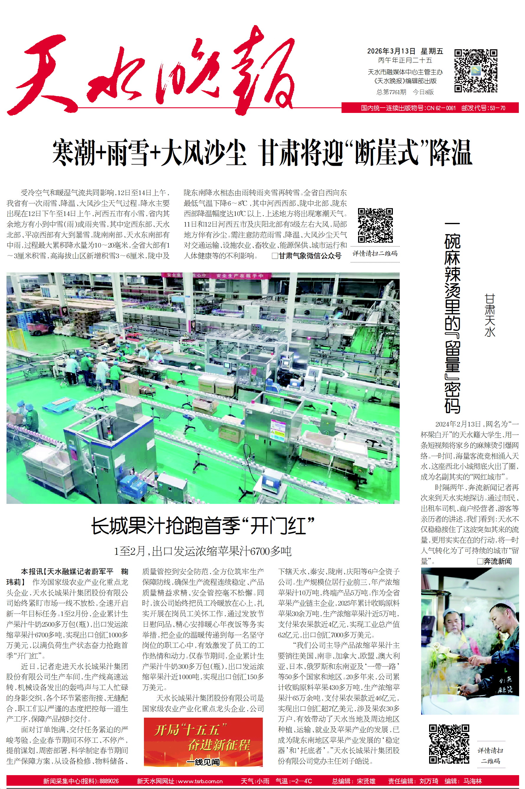 新闻 时间:2026年03月13日 来源:天水晚报