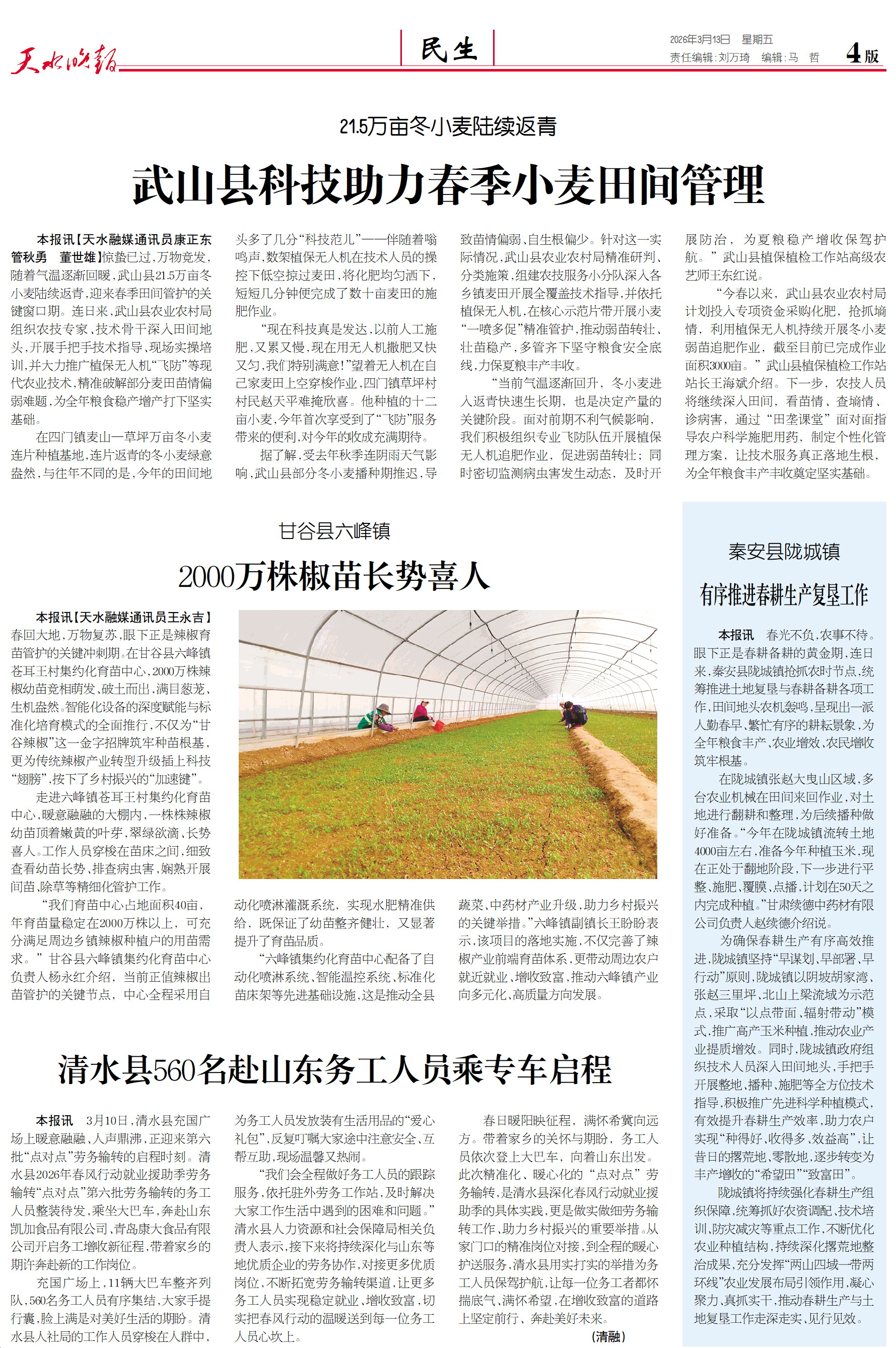 新闻 时间:2026年03月13日 来源:天水晚报