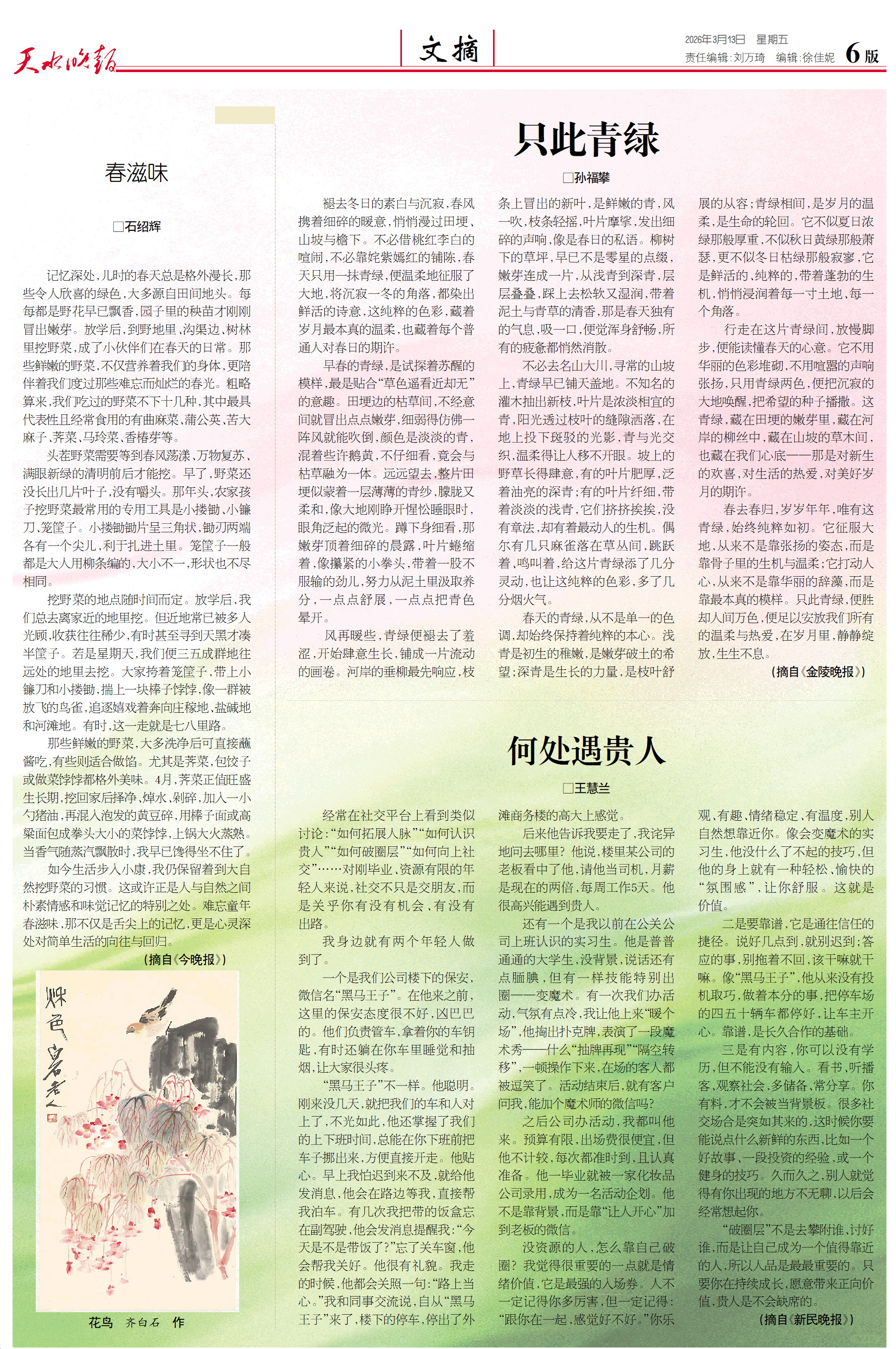 行走在这片青绿间,放慢脚步,便能读懂春天的心意。它不用华丽的色彩堆砌,不用喧嚣的声响张扬,只用青绿两色,便把沉寂的大地唤醒,把希望的种子播撒。这青绿,藏在田埂的嫩芽里,藏在河岸的柳丝中,藏在山坡的草木间,也藏在我们心底——那是对新生的欢喜,对生活的热爱,对美好岁月的期许。