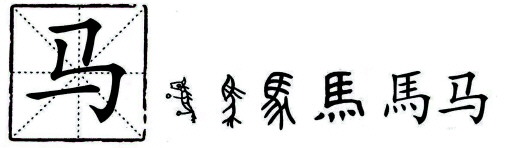 今天的简化字“马”,藏着小巧秘密:上面的横折是马的头,竖折折钩是它弯弯的身体,最下面的一横,正是它甩来甩去的大尾巴!所以,写“马”字时,要像骑马一样稳稳当当,一笔一画都不能马虎哦。