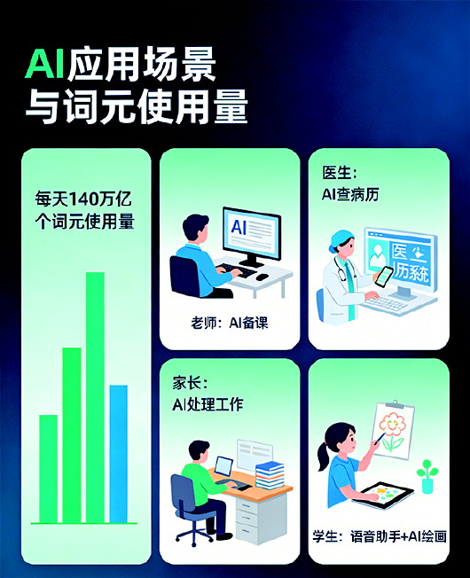每天140万亿个词元的使用量,说明AI特别“忙”!老师用它备课,医生用它查病历,爸爸妈妈用它处理工作,我们的语音助手、AI绘画也离不开它,它已经变成了我们的好帮手。