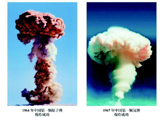 1964年中国第一颗原子弹爆炸成功(左) 1967年中国第一颗氢弹爆炸成功(右)
